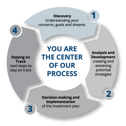 Circumstances can and will change for clients. Whether your goals and objectives have evolved, you’re worried about market volatility, or you’d just like reassurance that you are on the right path, we are committed, to being available to you. If you think it might be time to make changes, we can start the process again to help keep you on track.